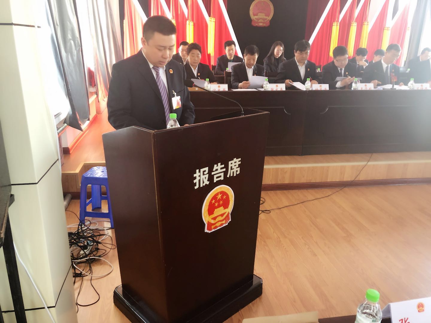 上午10时,大会在庄严的国歌声中隆重开幕。大会先后听取审议了镇长蓝非的《八面通镇2017年政府工作报告》和镇人大主席苏仲伟的《八面通镇人大主席团工作报告》,并通过了各项报告决议。