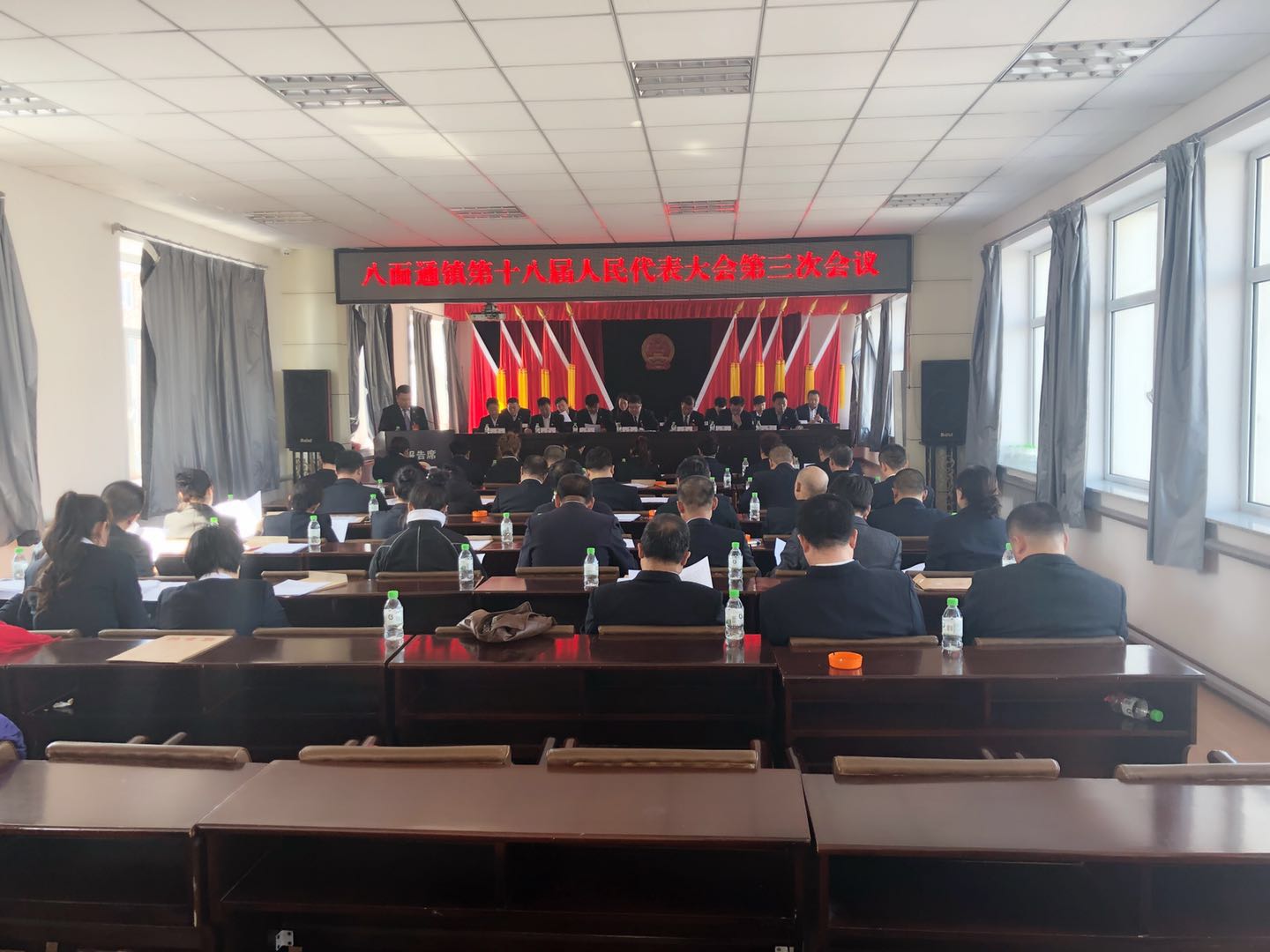 3月9日,八面通镇第十八届人民代表大会第三次会议在镇政府大会议室召开。全镇48名人大代表、8名列席代表参加了本次会议。